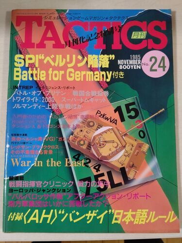 TACTICS 第24号 表紙 TACTICS第24号(1985/11/1)を読んでみた。 月刊化第1号だ。 判型がB5からA4中とじに変わり、特集がなくなった。 付録ゲームは、SPI『ベルリン陥落』(Battle for Germany)。 もくじは次のとおり。 TACTICS 第24号 もくじ 発売当時は購入し…